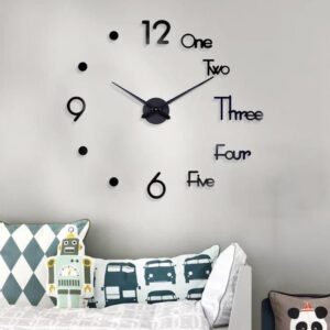 CHANCY’OR Large Modern DIY Wall Clock Frameless 3D Mirror Wall Clock Decor for Home Living Room Bedroom Office . Available in 3 colours (Black Gold and Silver) size 37 to 47 inch diameter.